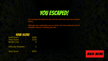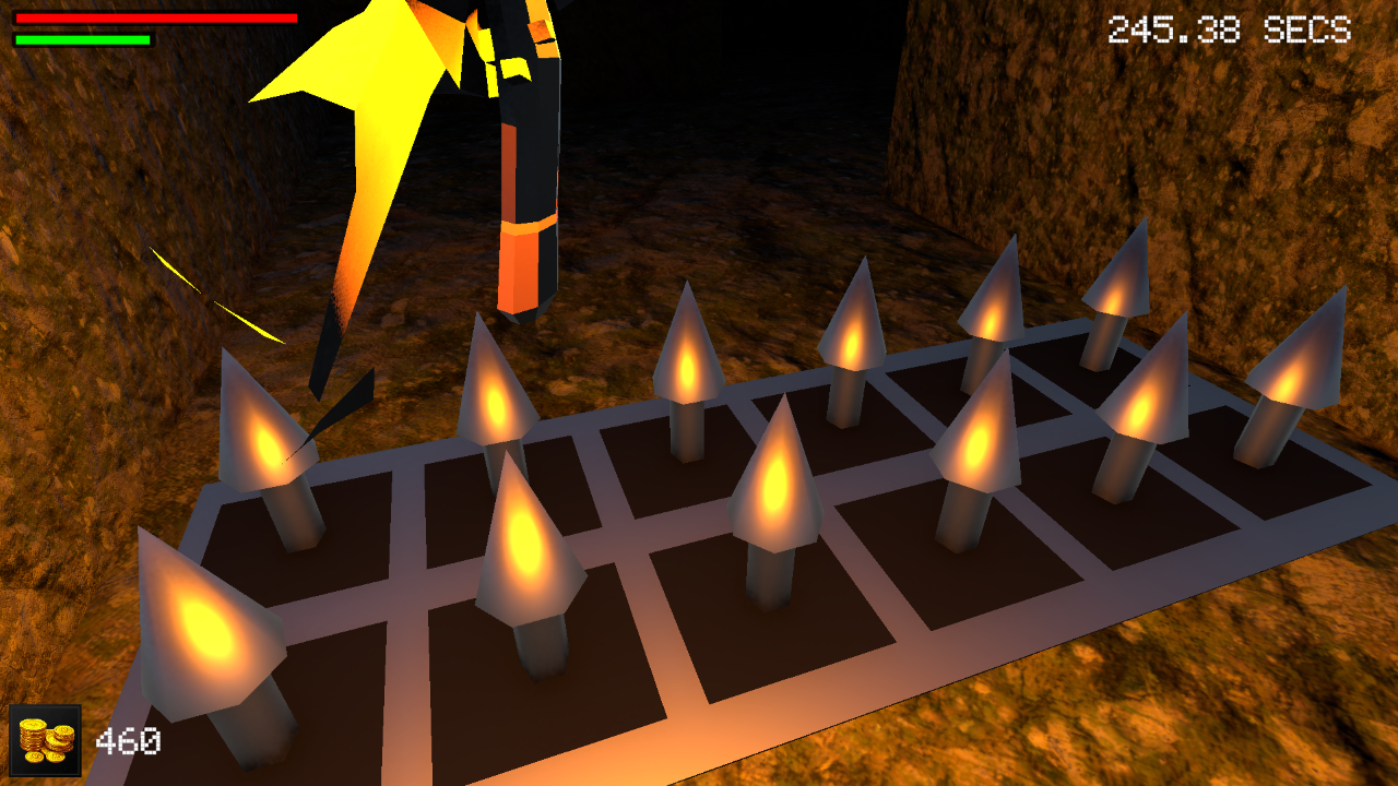 As an explorer of a forgotten temple, you were knocked unconscious. Awoken, you find that the booby traps within this labyrinth have been activated. With no recollection of where you entered, you have 5 minutes to find the exit before it closes for good and you become trapped forever. Stay alive, avoid as many traps as possible and collect as much gold as you can carry, in your search for an escape...